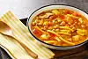 Poteter gir substans og fylde til retten, mens kikerter bidrar med en jordnær dybde og proteininnhold. Rød og grønn paprika, løk og hvitløk gir en sødme og aromatisk kompleksitet, og krydder som laurbær, spisskummen og paprika gir en varme og krydret undertone.